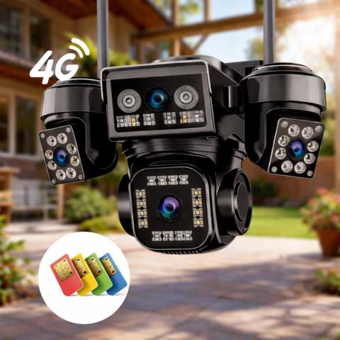 Поворотна вологозахисна 4G камера 4 лінзи / Поворотна камера V380 PRO