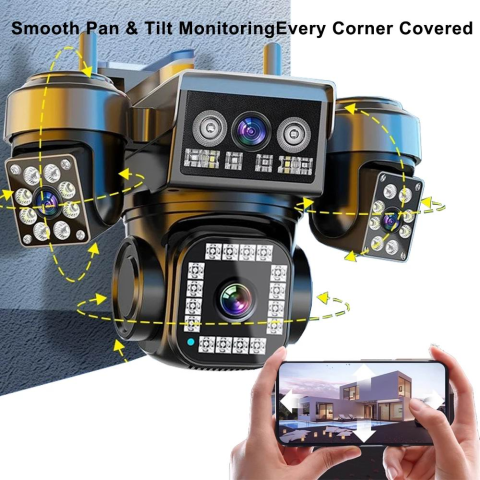 Нижня PT камера підтримує горизонтальне обертання 320° та вертикальне 90°, можна дистанційно керувати камерою, щоб переглядати кожен куточок за допомогою мобільного телефону.