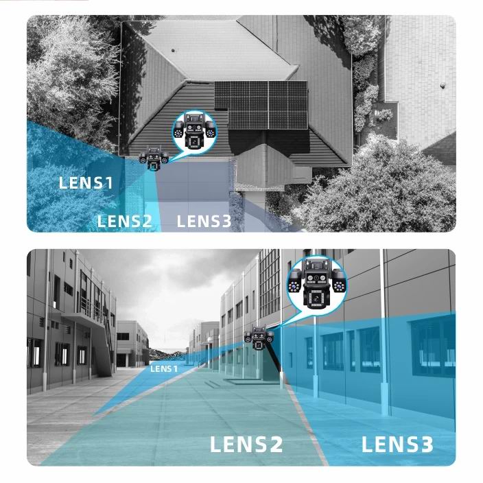 Наступний об'єктив PTZ підтримує горизонтальне обертання на 320°, вертикальне обертання на 90°, три лінзи можуть забезпечити моніторинг на 360° без мертвих кутів.