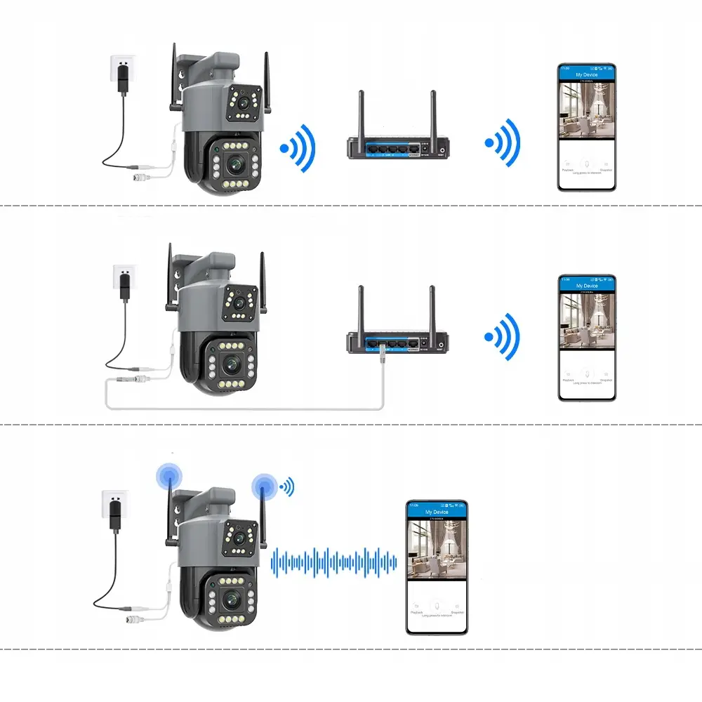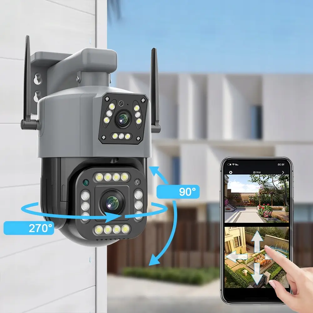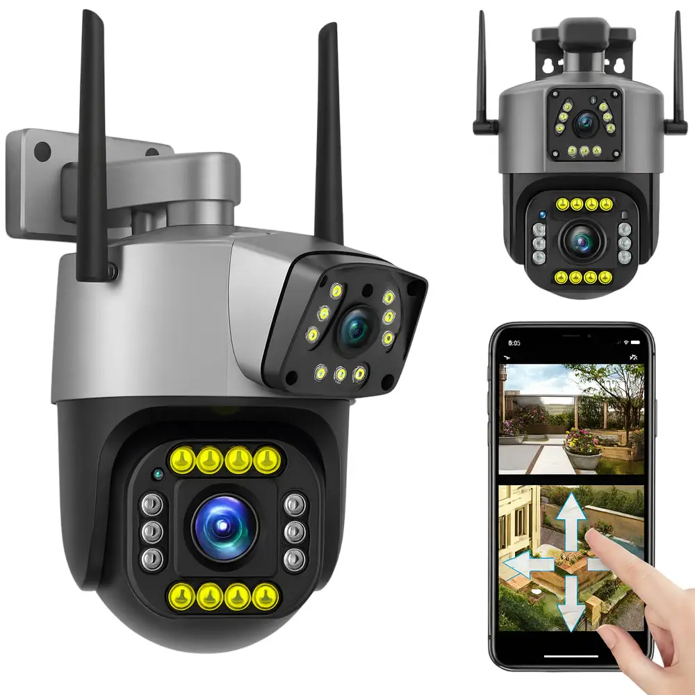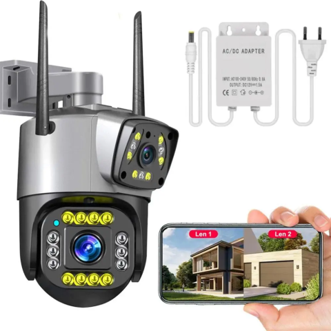 Поворотна WiFi камера Qettopo V380 / Вулична IP камера відеоспостереження 8Мп, 2 об'єктиви