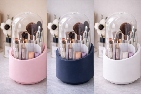 Завдяки прозорій кришці органайзер захищає ваші пензлі для макіяжу, олівці для брів, підводки для очей, помади, блиски для губ, ручки тощо. від вологи та пилу, щоб ви могли безпечно використовувати їх.