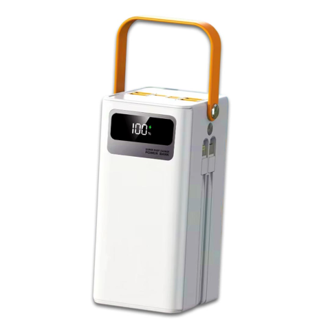 Power bank 100000 mAh зі швидкою зарядкою та вбудованими кабелями, білий