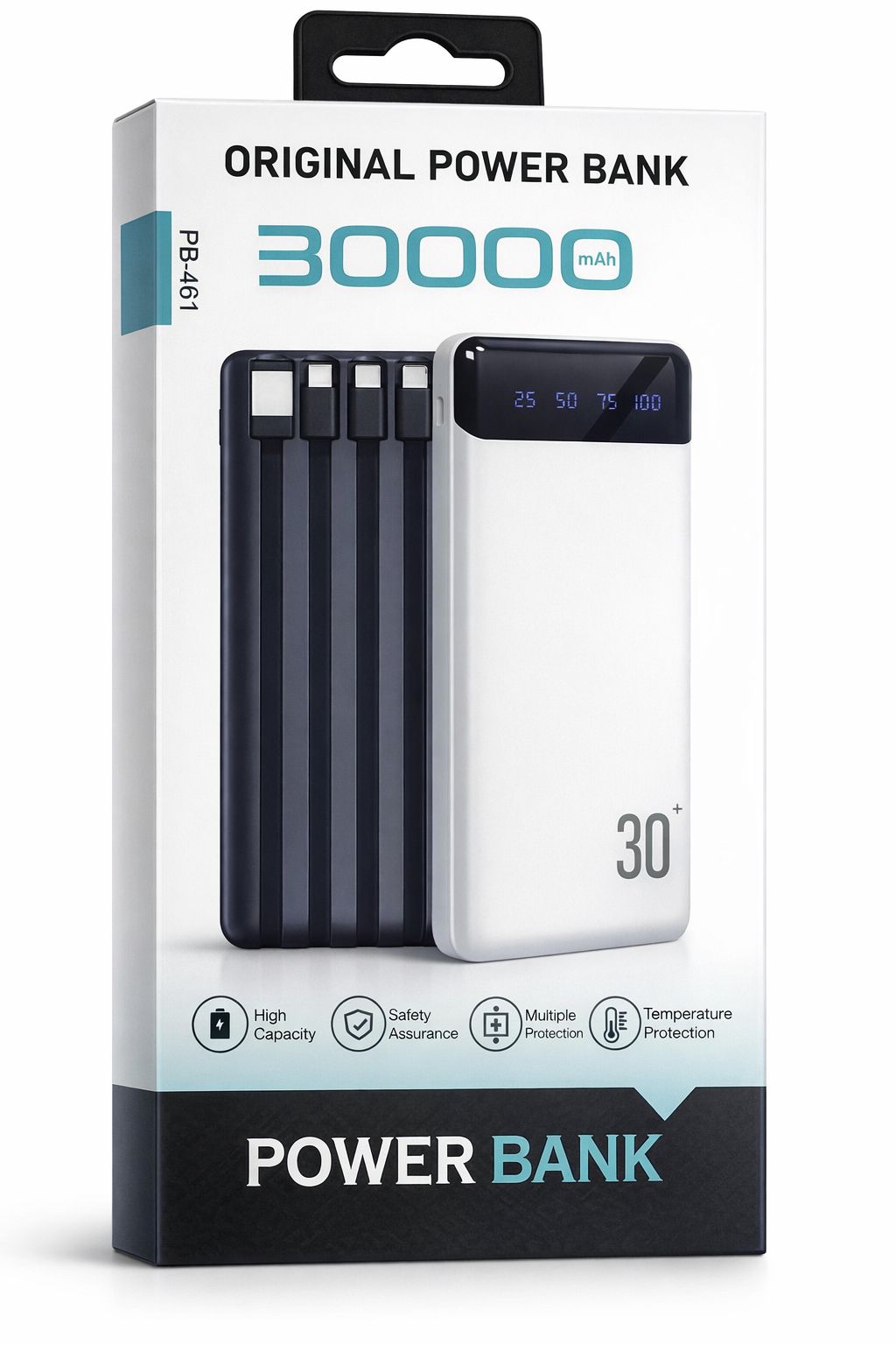 PowerBank PB-461 / Портативний зарядний пристрій 30000 mAh з цифровим дисплеєм