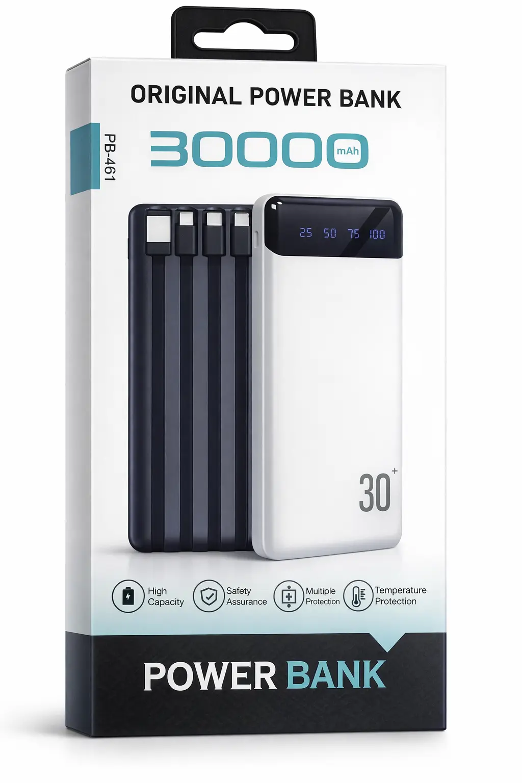 Потужний та надійний Power Bank на 30000 mAh – ідеальне рішення для зарядки смартфонів, планшетів, навушників та інших гаджетів у дорозі, вдома або під час відключення світла.