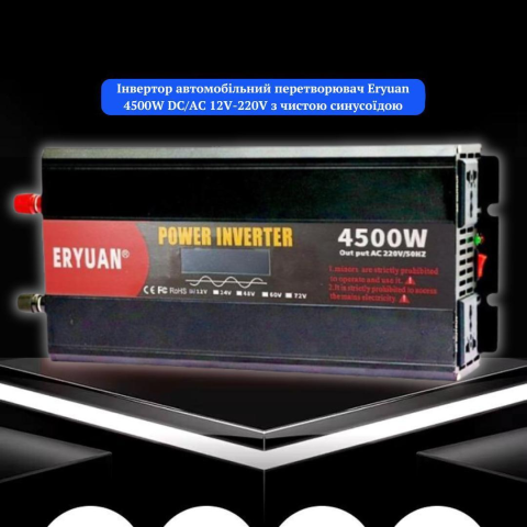 Перетворювач напруги Eryuan 4500W – це потужне, ефективне та надійне рішення для забезпечення мобільного живлення у будь-якій ситуації.