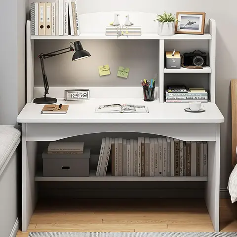 Стіл письмовий QW-G257CΩ / Сучасний стіл з полицями / Стіл письмовий для роботи та навчання 100х121х48см Білий