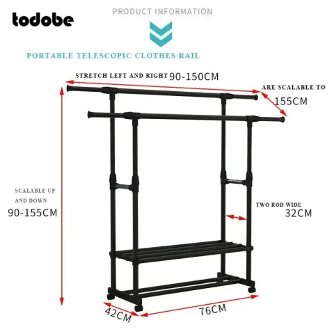 Пересувна стійка для одягу заощадить місце в будинку, а на додаткових полицях можна зручно скласти аксесуари та взуття. Розбірна конструкція Стійка повністю розбірна. Збирати або розбирати її швидко і дуже просто, для цього не потрібні спеціальні інструменти. Верхні поперечки мають різну висоту, що дозволяє розмістити одяг різної довжини, у тому числі верхню.