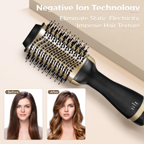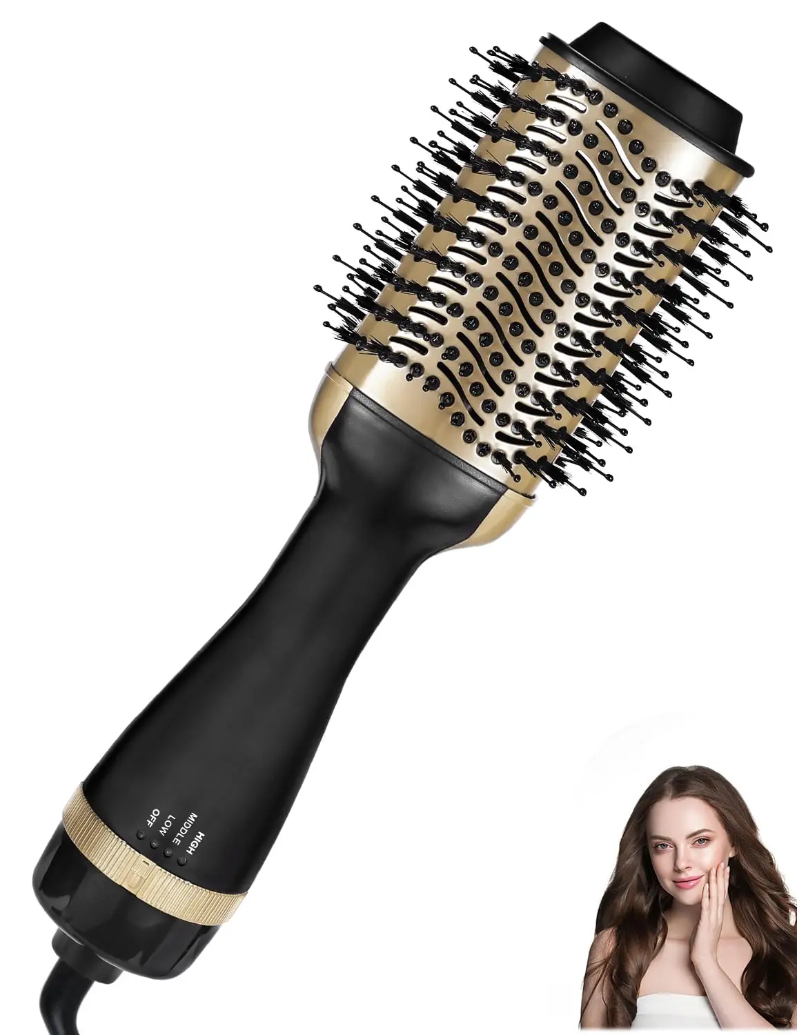 ✔️ Побудований зі справжнім генератором іонів для гладкого та неслухняного волосся. Покращена потужність 1200 Вт забезпечує правильне нагрівання та сильніше нагрівання. Покращений дизайн робить його менш галасливим, а ручка ніколи не нагрівається. Шнур, що обертається на 360° та овальна форма забезпечують гнучке використання. Розроблений з нейлоновими щітками, що запобігають заплутуванню, та щітковою щетиною, 3 рівнями нагріву, керамічним покриттям.