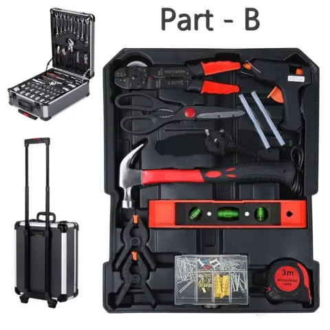 Великий професійний набір інструментів у валізі 408 предметів · Універсальний набір інструментів для дому та авто з тріскачкою – це ваша універсальна майстерня, яка завжди з вами. Він продуманий так, щоб ви не потребували купівлі окремих додаткових інструментів, а мали все необхідне, зібране в одному місці. 408 деталей набору дозволять вам бути у всеозброєнні в будь-якій ситуації, за будь-якої поломки або ремонту.