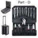 Чотирирівнева валіза передбачає зберігання інструментів у правильному логічному порядку та забезпечує швидкий доступ до деталей, а телескопічна ручка та коліщата на корпусі валізи дозволять легко та швидко його транспортувати.