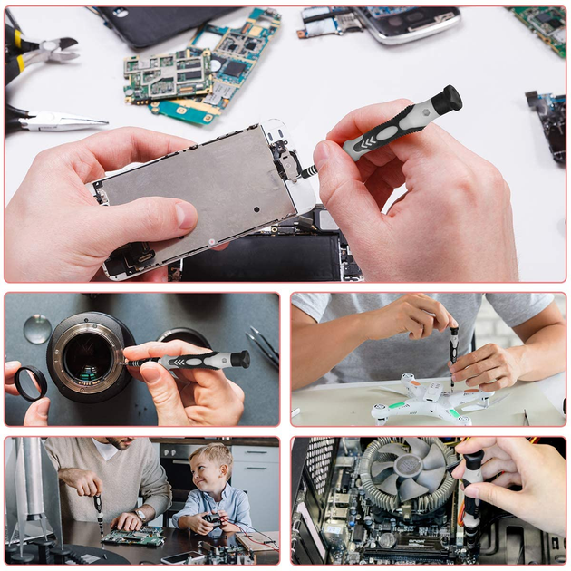 З набором професійних викруток SHARDEN можна легко відремонтувати практично будь-який продукт, що застосовується в повсякденному житті. Наприклад, ремонт iPhone, iPad, ноутбука, комп'ютера, смартфона, планшета, годинника, фотоапарата, окулярів, ігрових консолей та інших електронних пристроїв. За допомогою набору інструментів SHARDEN ваш точний ремонт буде швидким та ефективним.