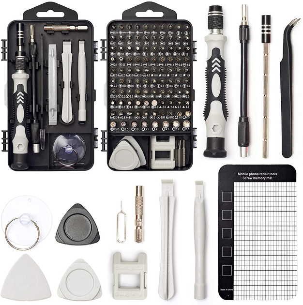 НАБІР ПРОФЕСІЙНИХ Викруток 122 в 1: Професійний набір інструментів 122 в 1 розроблений для ремонту на основі тисяч даних з ремонту, включає 101 найбільш поширену магнітну насадку для викруток і 21 необхідний елемент інструментів. Набір викруток прецизійних призначений для ремонту iPhone, смартфонів, ПК, ноутбуків, комп'ютерів, комутатора Nintendo, Ігрових консолей, годин, окулярів, камери, Xbox та інших електронних пристроїв.