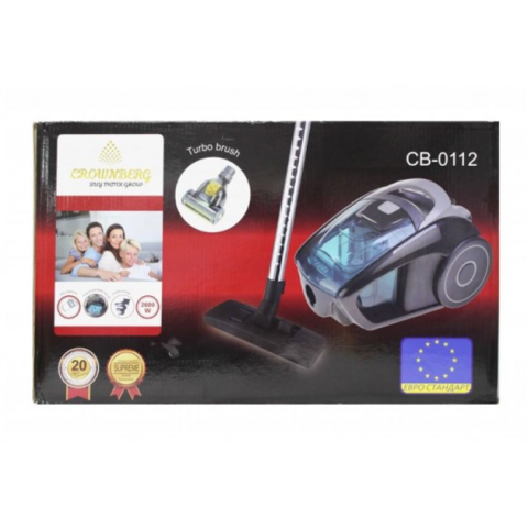 Безмішковий пилосос Crownberg CB 0112 пилосос Crownberg CB 0112 зарекомендував себе як сучасний надійний пилосос , на ринку , завдяки своїй простоті та зручності з незначними технічними змінами він уже понад п'ять років . У сигменті бюджетних пилососів він втілив у собі всі необхідні вимоги , властиві даному приладу , а саме має потужний двигун 2600 W , технологія Мультициклон , властива преміальним пилососам , забезпечує чотирьох ступінчасту фільтрацію повітря , зручна залізна телескопічна трубка, об'єм колби становить 1,5 літра, що цілком вистачає для збору пилу, також це дуже зручно, не треба витрачатися на мішки для збору пилу, зручний механізм для вилучення пилу з колби, також є додаткова щілинна насадка. Пилосос має низький рівень шуму. Є автоматичний механізм змотування електричного шнура, довжина електричного кабелю становить 4,2 метри.