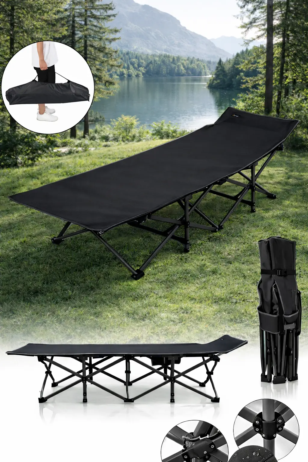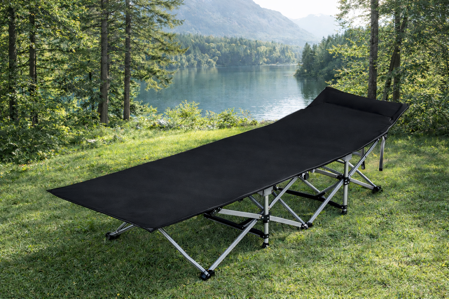 Розкладне ліжко з ніжками/ розкладачка /розкладний шезлонг (190х68х36) Black
