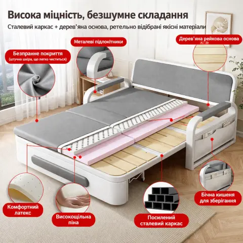 Розкладний диван-ліжко з колесами 2 в 1 / Складане ліжко для дому 192х82х65 см