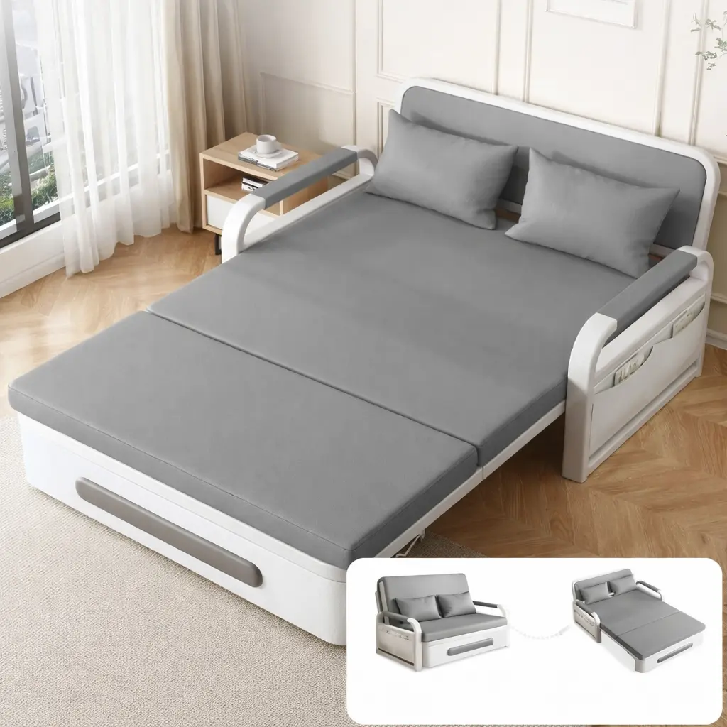 Наш розкладний диван-ліжко з висувним ліжком вдень виглядає як звичайний диван-ліжко, але вночі він легко трансформується у затишне ліжко за лічені секунди, і цей диван поставляється з додатковими подушками, що ідеально підходить для привітань. Цей розкладний диван-ліжко - ідеальний вибір для більшості домовласників, які мають невеликий простір, але люблять приймати гостей на ніч.