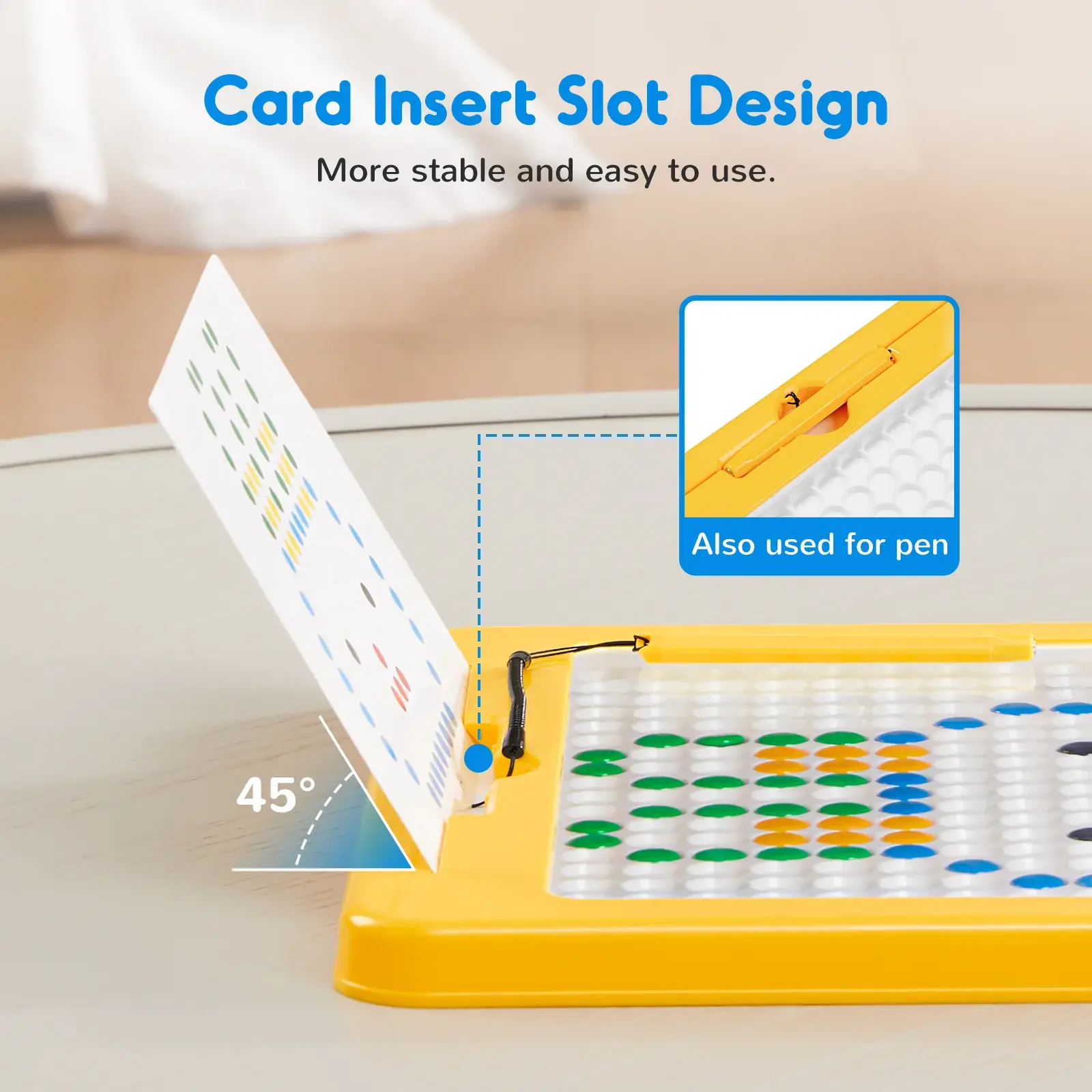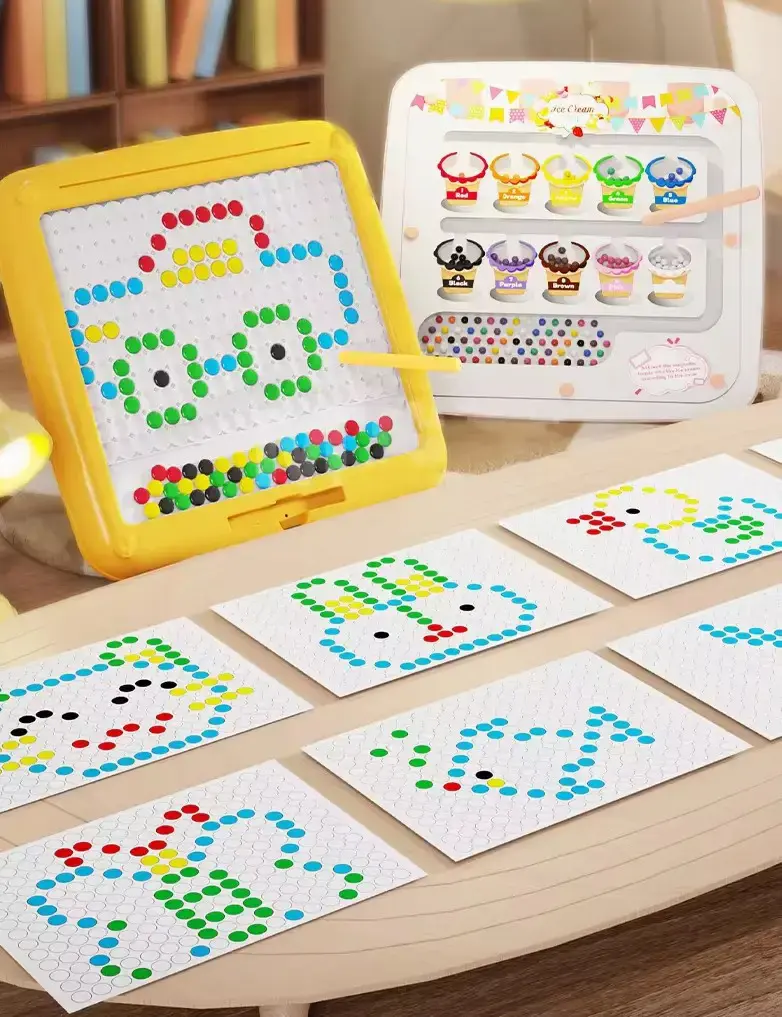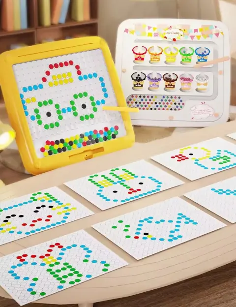 Магнітна дошка - це не просто іграшка, а справжній центр для вашої дитини! За допомогою магнітного стілус і різнокольорових фішок вона зможе створювати унікальні візерунки, малюнки і навіть цілі історії. У комплекті можна знайти зручні карти з готовими шаблонами, які допоможуть освоїти нові навички та надихнути свої шедеври.