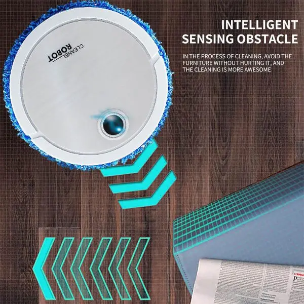 Розумний робот-прибиральник для будинку, призначений для сухого (прибирання пилу та вовни) та вологого прибирання (бруду та липкі сліди) різних покриттів, таких як ламінат та плитка. Він оснащений вбудованим датчиком перешкод та універсальним колесом, що автоматично змінює напрямок при зустрічі з перешкодами.