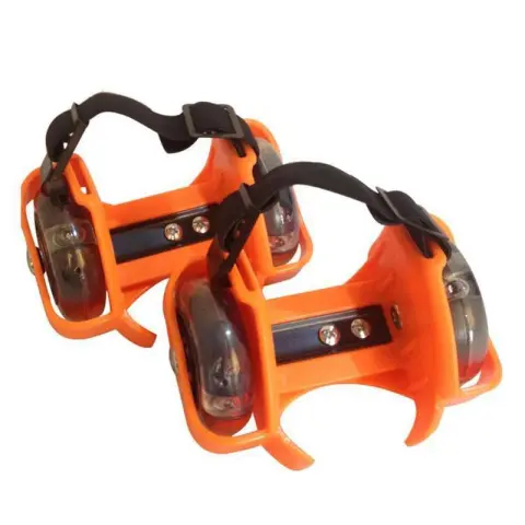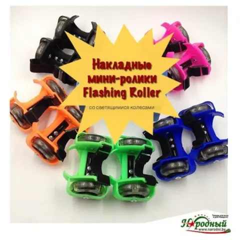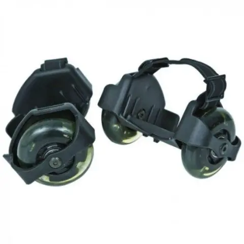 Блискучі ролики одягаються на п'яту звичайного взуття, і кріпляться еластичним ременем, з боків розміщений по парі коліс.