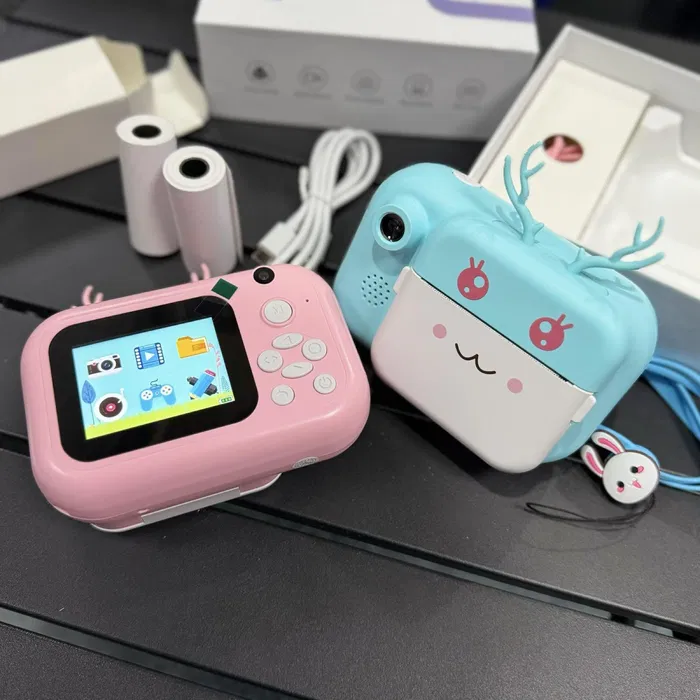 Камера оснащена подвійним об'єктивом, має функцію запису в HD 1080p, підтримує карти MMC 32G і SD, а також дозволяє робити знімки високої роздільної здатності 3456*2448 пікселів. У комплект входять три рулони паперу для миттєвого друку. прикрасити кольоровими ручками, що дає дітям свободу для самовираження. та творчості.