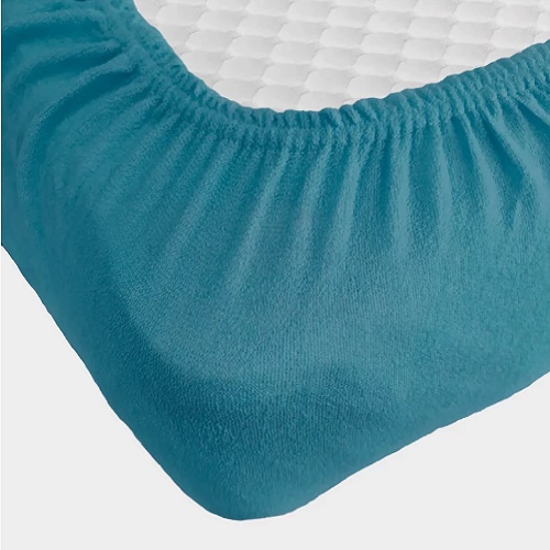 синий Простынь махровая на резинке Anisa с наволочками (220х240+30 см)