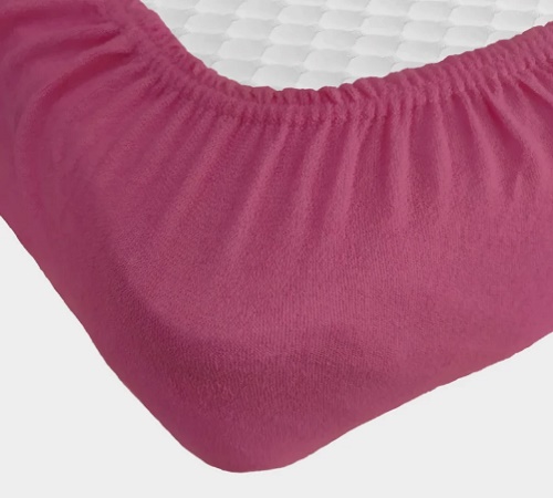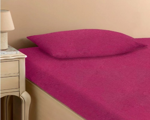 Бордовая Простынь махровая на резинке с наволочками Anisa (220х240+30 см)