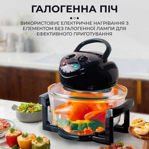 Галогенная печь. Использует электрический нагрев без галогенной лампы для эффективного приготовления.