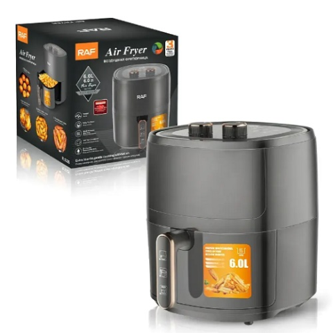 Аэрофритюрница Raf мощностью 1500 Вт — идеальное решение для более здорового и экономичного приготовления пищи по сравнению с классическими фритюрницами, так как для нее требуется минимум масла (1-2 ложки).