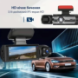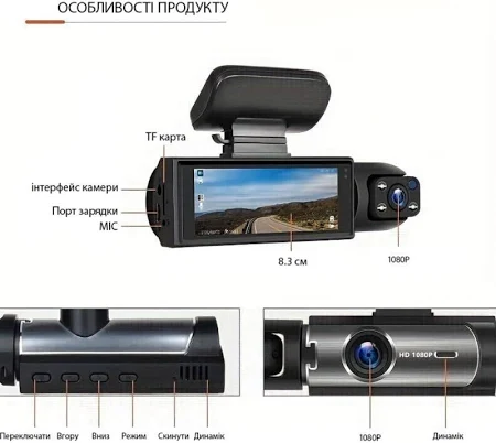 Передняя камера 1080P и задняя 720P обеспечивают детализированное изображение даже в условиях недостаточного освещения. Широкий угол обзора 170° (передняя камера) и 140° (внутренняя камера) позволяет фиксировать большую часть дороги, уменьшая вероятность упущенных моментов. Функция ночного видения помогает получать четкое видео даже в темное время суток.