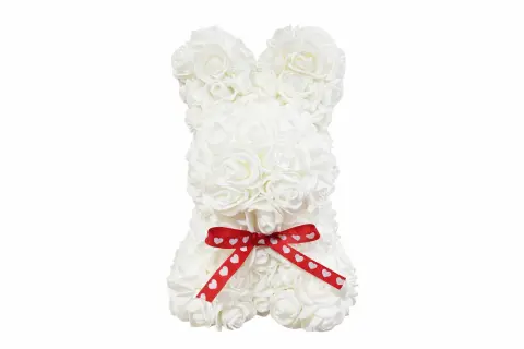 Зайчик из 3D роз в подарочной коробке KR-21 17/17/25см Белый