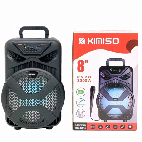 Портативная колонка-композитор KIMISO QS-1805 оборудована всеми современными функциями: Bluetooth, радиоприемник и mp3-плеер, считывающий информацию с флешек. В комплекте с колонкой добавляется проводной микрофон. Все управление расположено на верхней панели, что очень удобно, если вы используете колонку в качестве караоке системы.