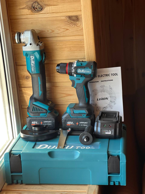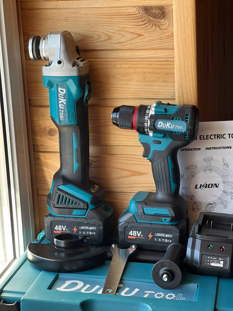 Комплект 2-в-1 предлагает вам мощную ударную дрель DTW488 и компактную аккумуляторную болгарку DGA506ZPRO, оба оснащены бесщеточными двигателями 48V и аккумуляторами 6.0Ah.