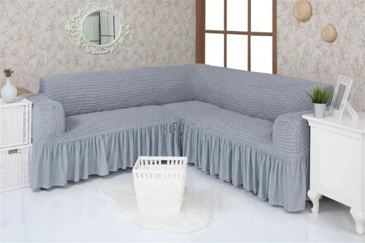 Чехол накидка на угловой диван с креслом, комплект чехлов на угловой диван и кресло с оборкой Турция
