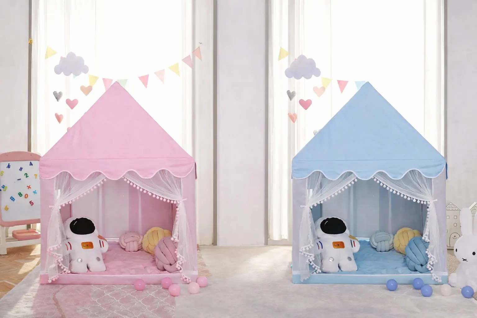 Палатка изготовлена из прочных и безопасных материалов, устойчивых к износу. Мягкие края и легкая конструкция обеспечивают безопасность даже самых маленьких. Стильный дизайн в виде домика создает уютную атмосферу, способствуя творческим играм и превращая пространство в личный мир вашего ребенка.