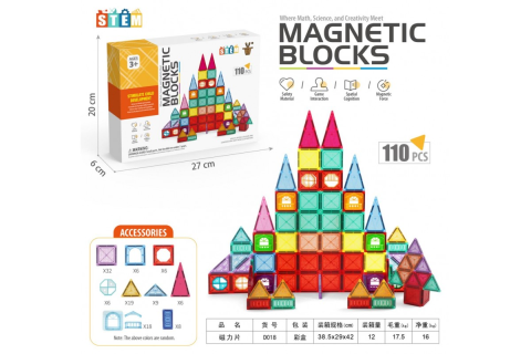 Детский конструктор D018, магнитные блоки 110 деталей