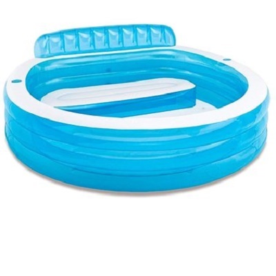 Надувной бассейн Intex 57190 достаточно большой и вместительный для всей семьи. Бассейн оснащен встроенным надувным сиденьем и спинкой. Пока дети плещутся в воде, родители могут наблюдать за ними с мягкого диванчика.