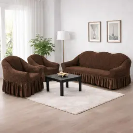 Серый Турецкая накидка на угловой диван с оборкой, натяжной чехол на диван