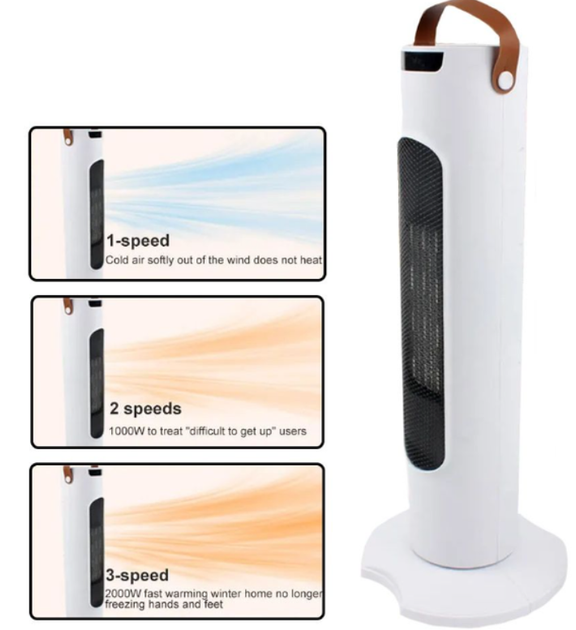 Електрический башенный обогреватель, тепловентилятор белый, 2000 Вт, 3 режима обогрева