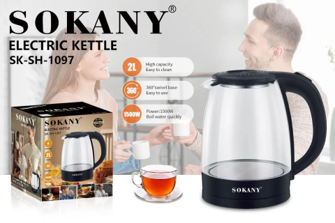 Электрический стеклянный чайник Sokany SK-SH-1097