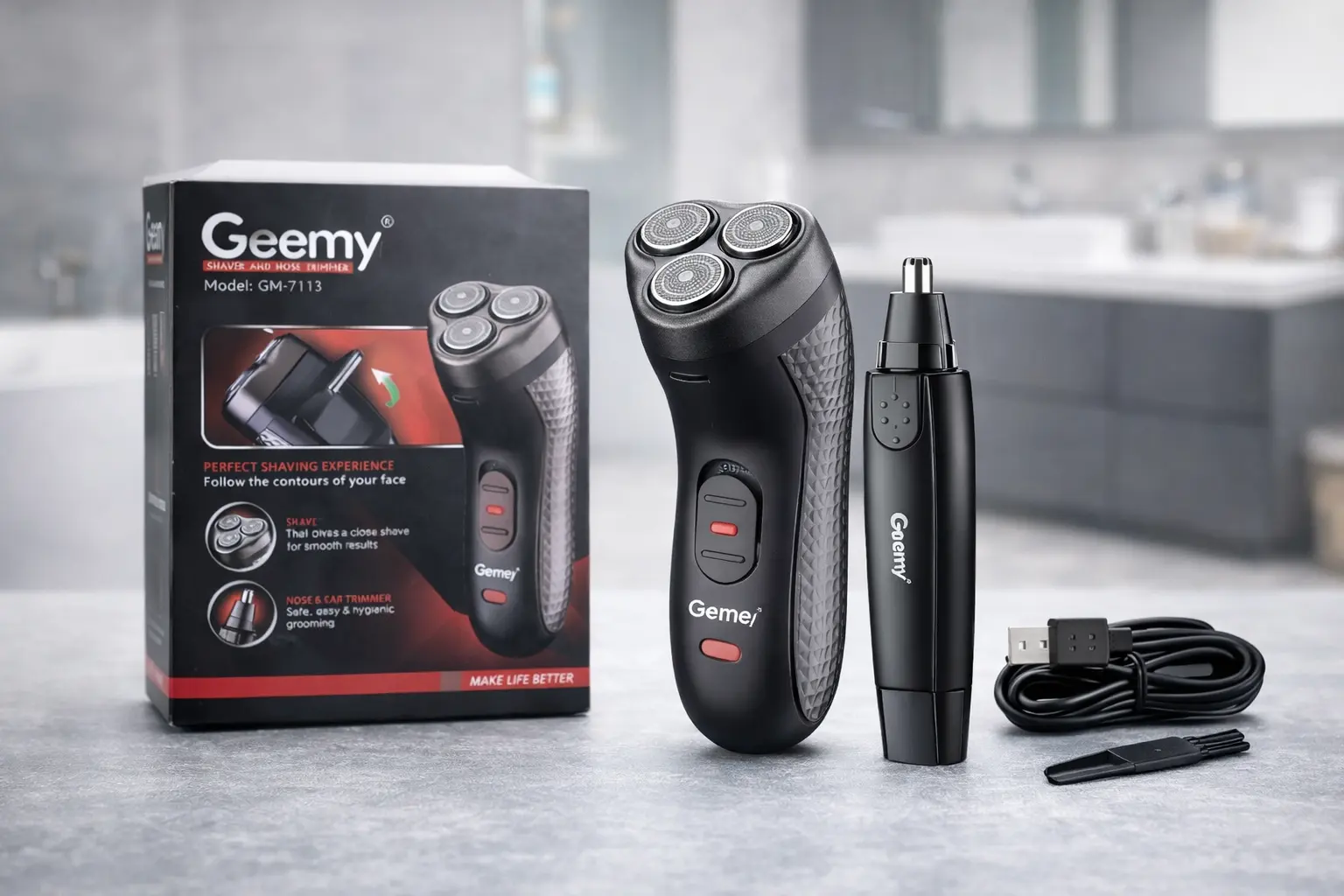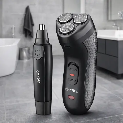 Электробритва GM-7113 2 в 1 имеет в комплекте не только бритву, но и встроенный триммер для удаления лишних волос из носа и ушей. Можно использовать его не только в домашних условиях, но и в деловых командировках или поездках, ведь приборы могут работать и от сети и аккумулятора.