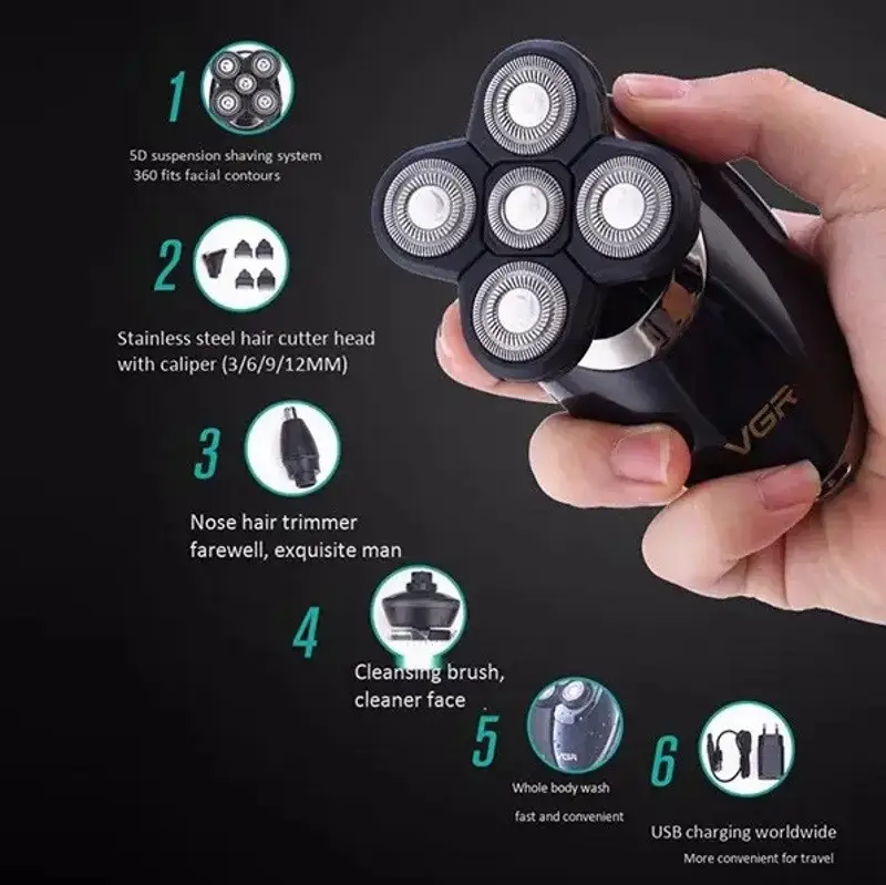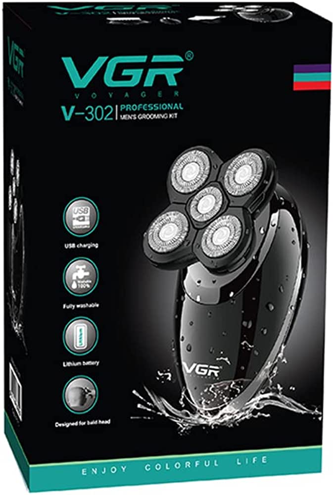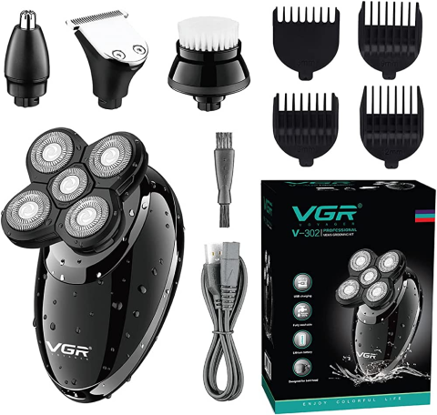 Электробритва V-302 для мужчин роторная для влажного и сухого бритья с плавающими головками и триммером 4в1 VGR