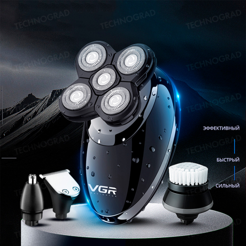 Электробритва для мужчин роторная для влажного и сухого бритья с плавающими головками и триммером 4в1 VGR (V-302)