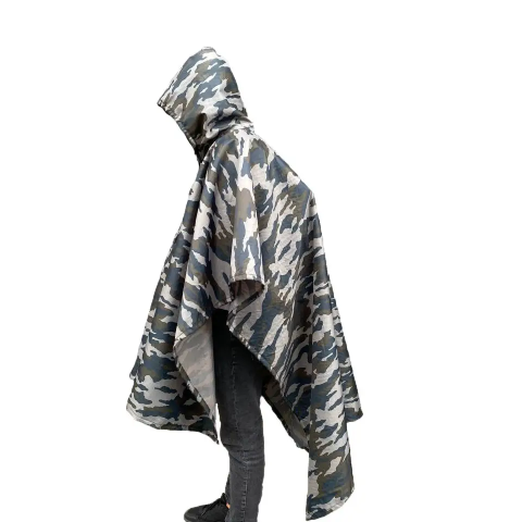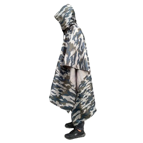 Дождевик  – это качественная репродукция американского военного пончо. Она предназначается для защиты человека и его снаряжения от сильного холодного ветра, дождя, снега и другой непогоды. Изделие универсально, его можно не только носить на себе, но и использовать в качестве тента или даже одноместной палатки. Производитель предусмотрел также вариант скрепления нескольких пончо в одно большое полотно. Последнее действие достигается с помощью специальных кнопочек, находящихся по краям одежды.
