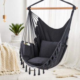 Подвесной гамак из плотной хлопковой ткани идеально подходит для использования как дома, так и на улице. Гамак оснащен надежными креплениями и антимоскитной сеткой, что обеспечивает безопасность и комфорт. Компактный и стильный, он станет отличным выбором для любителей туризма и активного отдыха.