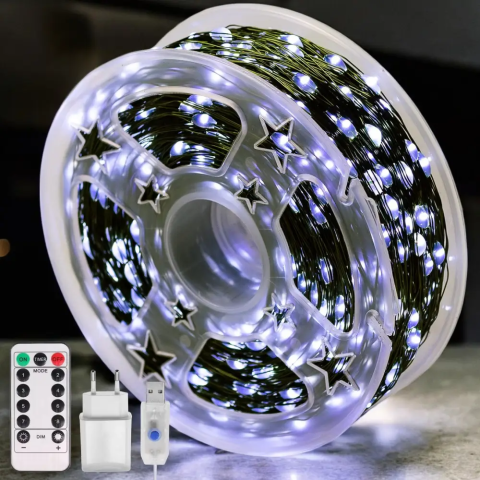 Гирлянда Роса 100 м с холодним белым светом – зеленая нить, пульт, 8 режимов
