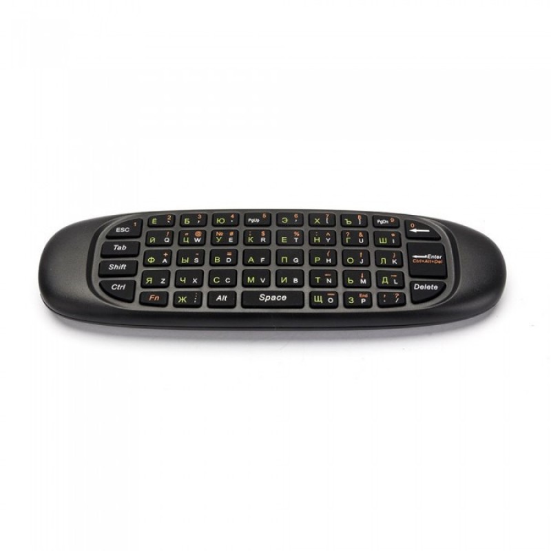 Мини клавиатура с полной раскладкой на русском и английском языке. Имеет управление курсором с помощью датчика гироскопа - воздушной мышью.