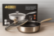 Внутренний слой – текстурированная нержавеющая сталь стойкая к подряпинам и антипригарным покрытиям, сковорода не боится предметов из металла.