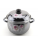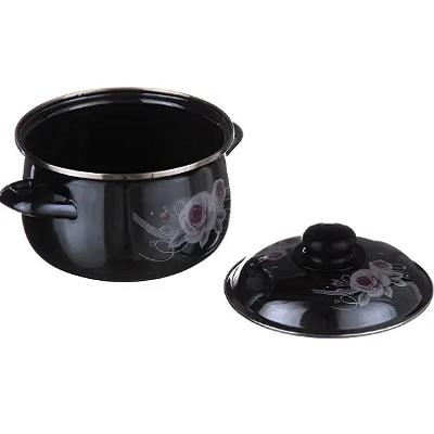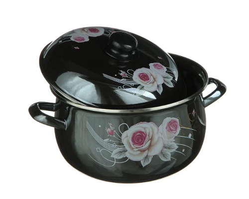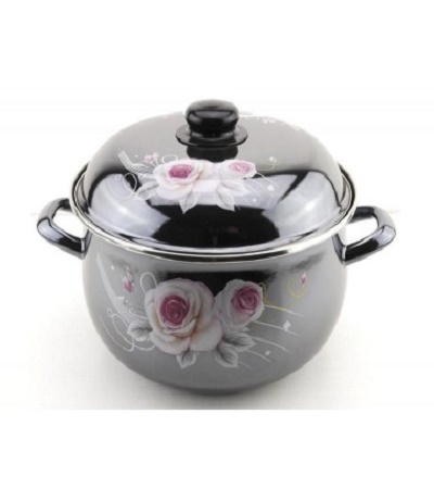 Кастрюля выполнена из стали и покрыта тройным слоем эмали. Такая посуда сочетает в себе такие характеристики, как безопасность, универсальность, неприхотливость. Благодаря слою эмали, в пищу не попадают ионы металлов, и не размножаются бактерии.