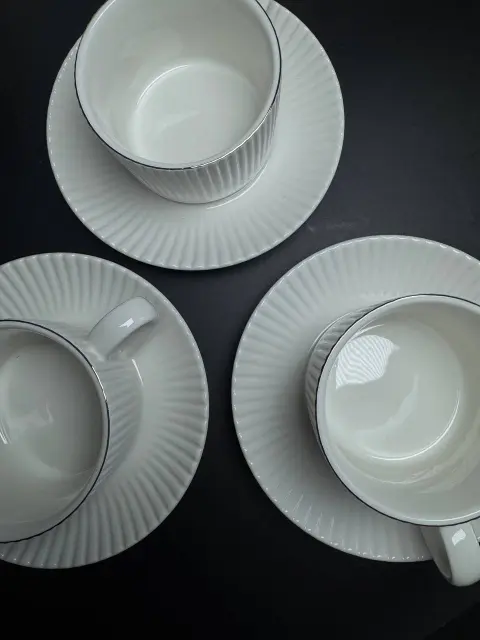 Компактный чайный сервиз 30-5 с тонким рельефным рисунком и тонкими полосками. Легкий, изящный и очень эстетичный, он дополнен аккуратным золотым ободком, придающим праздничное настроение. Идеально подходит для уютных чаепитий или стильного подарка.