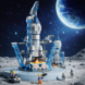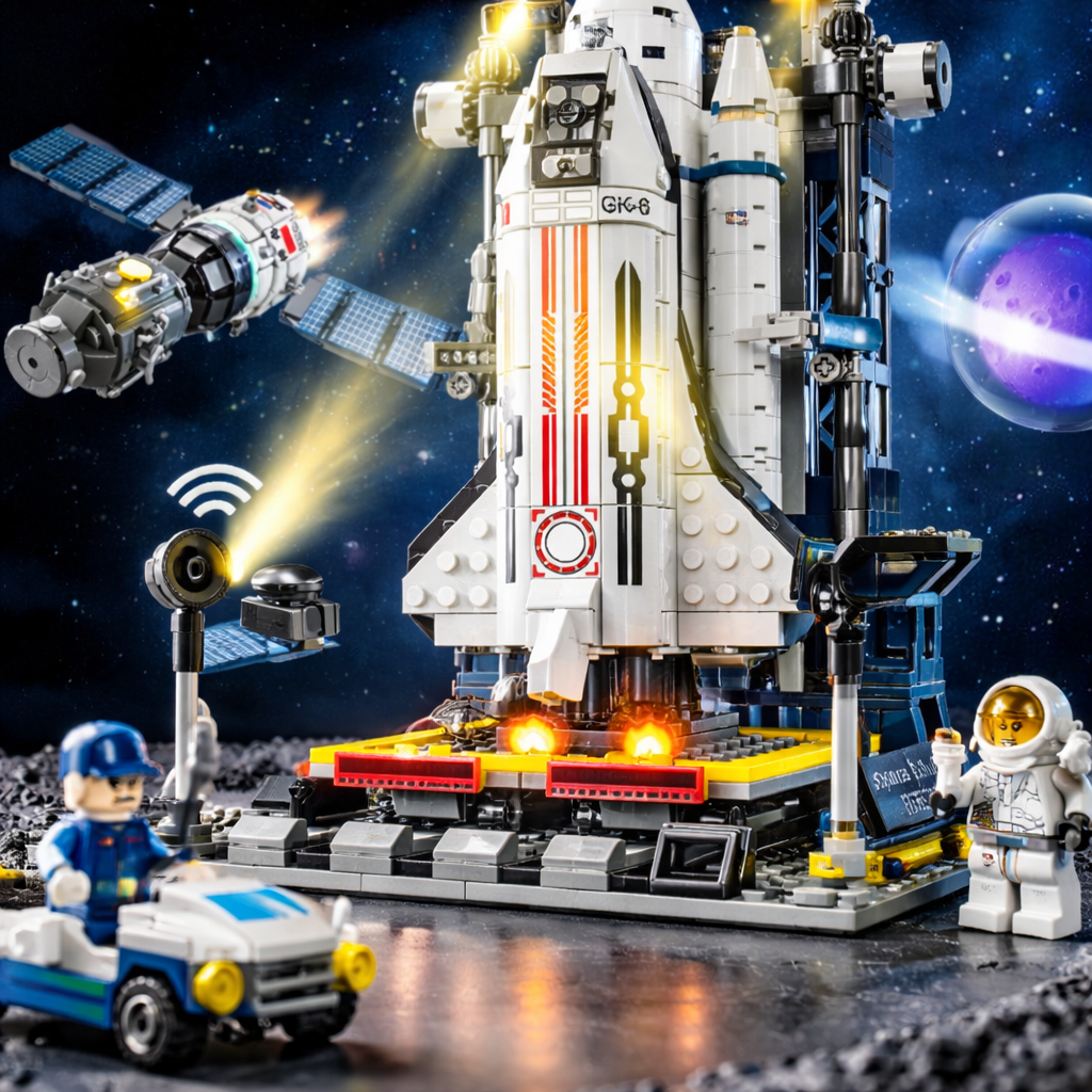- состоит из 458 деталей, из которых собирается космическая ракета – шаттл, стартовая башня запуска ракеты, спутник, выпускаемый из середины космического корабля, луноход – марсоход, мини-фигурки астронавтов;
